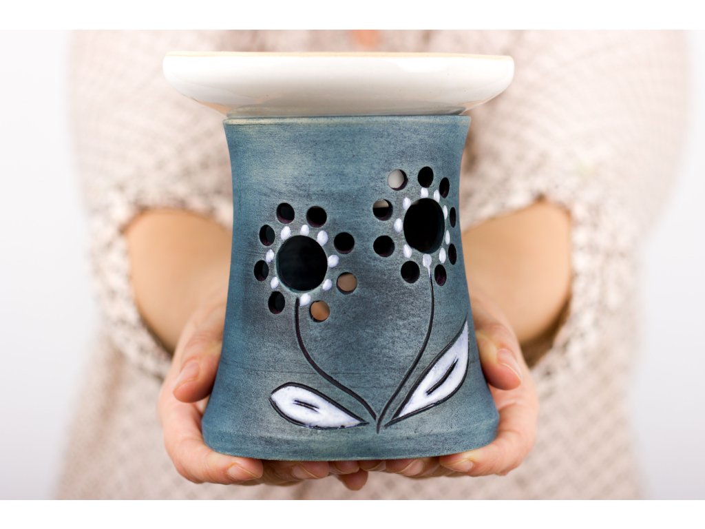 Aromalampa je vysoká přibližně 13cm. Má veliký kalíšek na vonný olej, když čajová svíčka vyhoří, tak v nádobce ještě trocha zbyde. Takže se kalíšek naprázdno nepřepaluje.