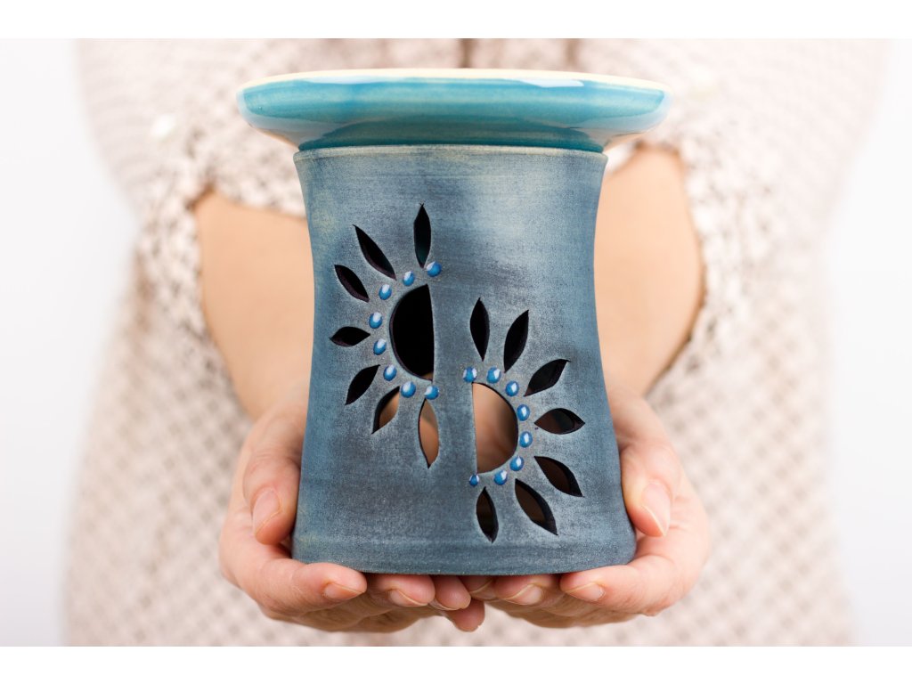 Aromalampa je vysoká přibližně 13cm. Má veliký kalíšek na vonný olej, když čajová svíčka vyhoří, tak v nádobce ještě trocha zbyde. Takže se kalíšek naprázdno nepřepaluje.